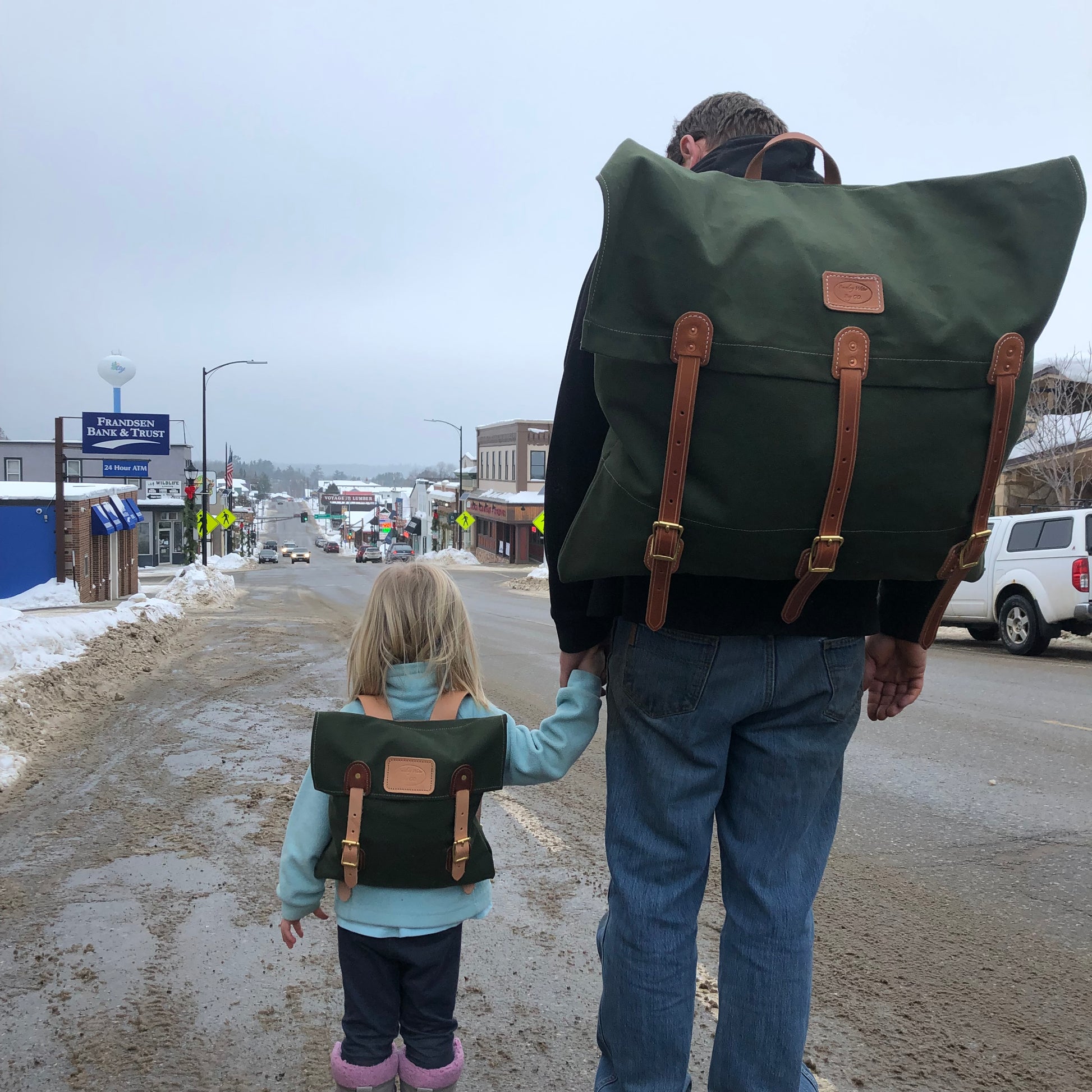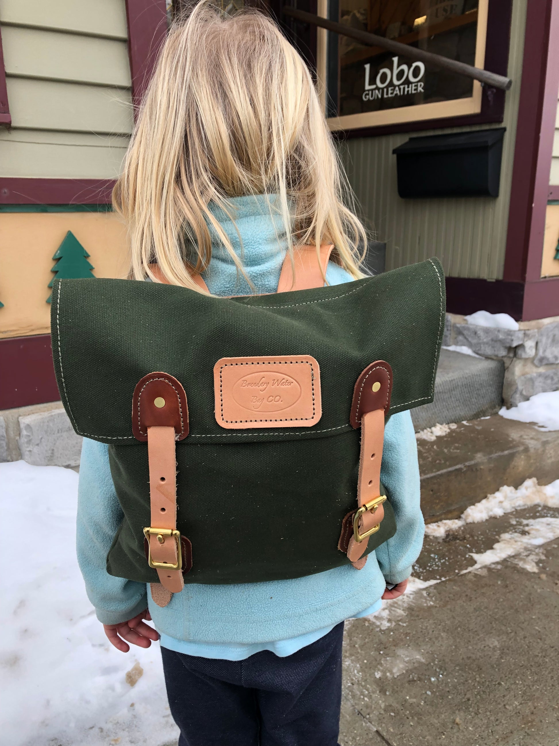When your little cubs in your life need a pack like daddy's this is what you get for them:) It's just big enough to hold shoes, and maybe a pair of jammies. We can also make the straps long enough for a women's handbag/purse.